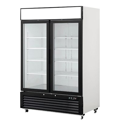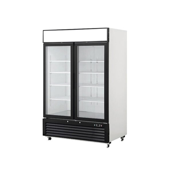 Upright Display Fridge | 1000L | 2 Hinge Doors | Double Glazed Glass | Black Trim | White Cabinet