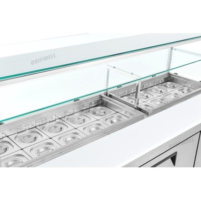 Quipwell SS54G 3-Door Glass Salad Prep Fridge 538L