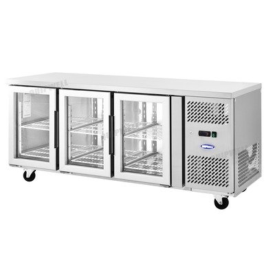 Quipwell WGA42 3-Door Glass Under Bench Fridge 1795x700x850mm
